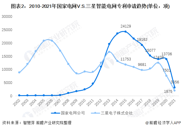 原标题:独家!国家电网VS三星智能电网技术布局对比(附专利总量对比、合作申请对比、重点专利布局对比等) 来源:前瞻产业研究院