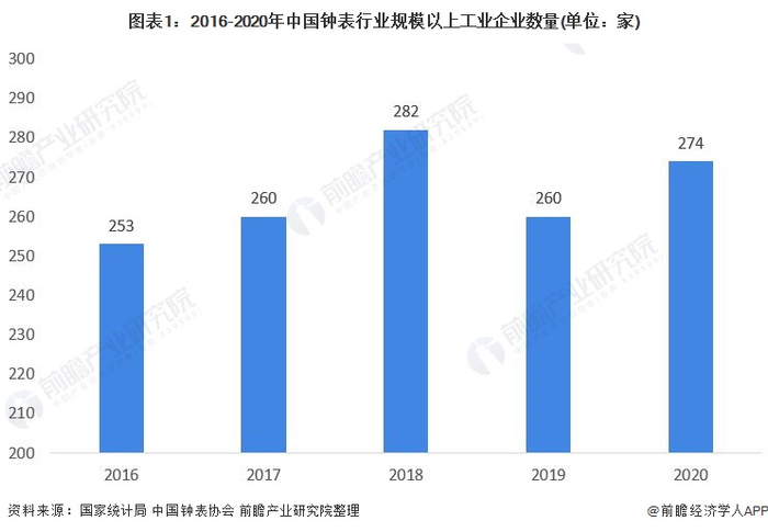 国产现代钟表工业主要从上世纪80年代开始,经过几十年的发展,目前我国已经成为全球重要的钟表制造基地,是世界上最大的钟表生产市场。从供给端来看,根据国家统计局数据显示,2020年,我国钟表行业规模以上企业有274家,较上年增加了14家企业。