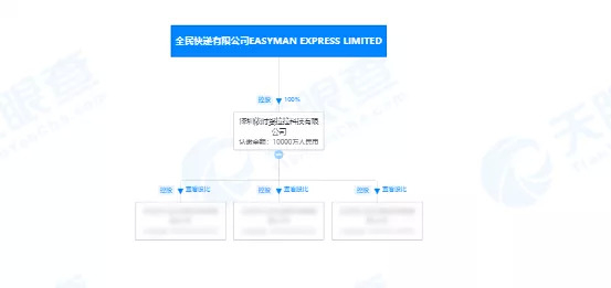 这家公司由香港全民快递公司100%控股,后者的实际控制人、股东和法人均不详。