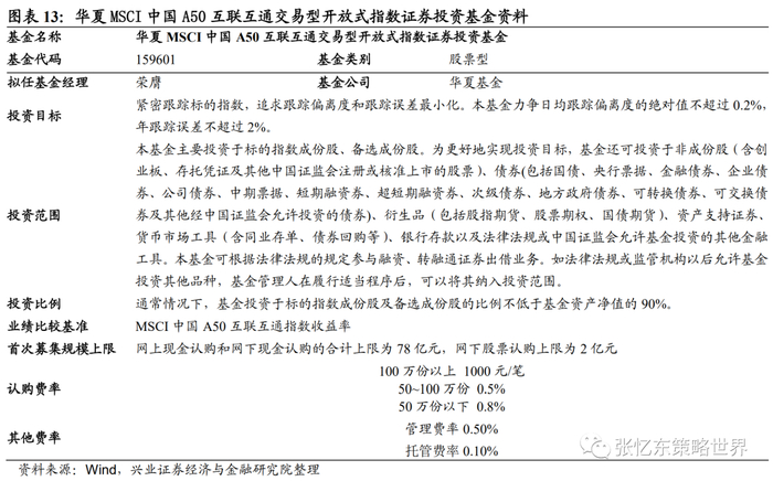 3.3、A50指数和期货的配合推出,有利于海外投资者资产配置和风险管理,有利于吸引更多类型的外资深入参与A股市场。MSCI中国A50股指期货推出,相关A50 ETF已经获批。股指期货和ETF等基金产品能够形成互补,更多工具可以衍生出更多策略,丰富产品生态。