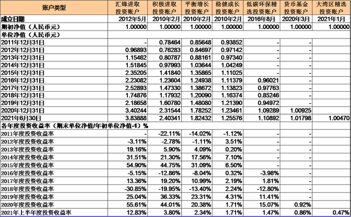 历年来汇丰人寿投资连结保险各投资账户投资回报率(截至2021年6月30日)