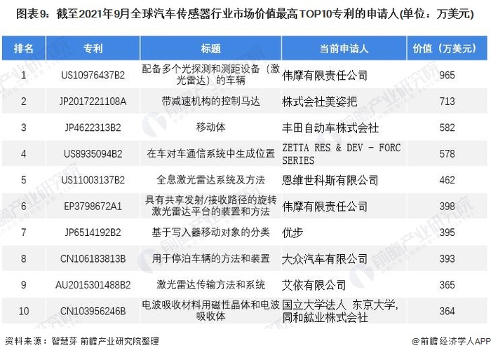 收藏!2021年全球汽车传感器行业技术竞争格局(附区域申请分布、申请人排名、专利申请集中度等)