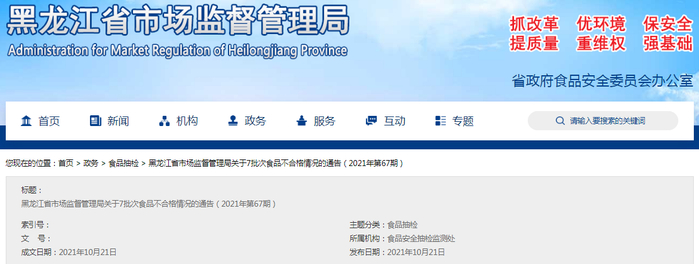 中国质量新闻网讯 近期,黑龙江省市场监督管理局组织完成了食品安全监督抽检任务302批次,涉及饮料、调味品、酒类等8类食品。其中抽检糕点63批次,合格样品62批次,不合格样品1批次,不合格项目主要是污染物超标问题。