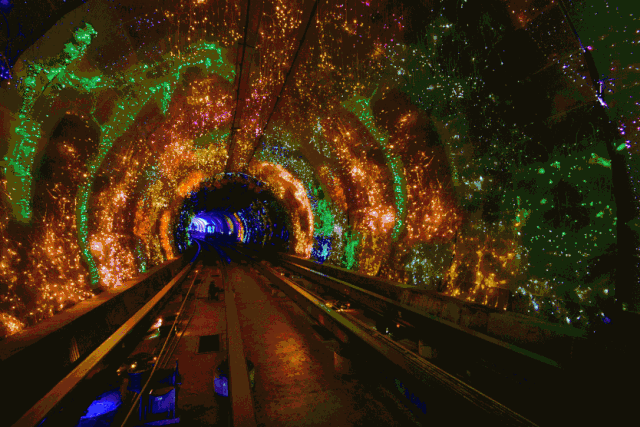 外滩观光隧道是中国第一条越江行人隧道,全长646.70米,总建筑面积近17500平方米,两边的地下建筑均为地下3层、局部4层结构,构成海洋世界风景,光影异术搭配,让人如进入梦幻之境。隧道于2001年1月1日正式开放。