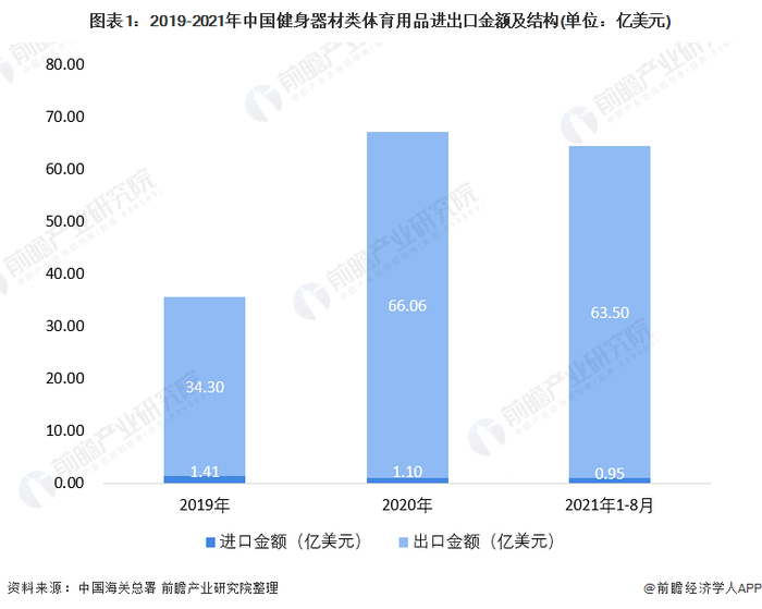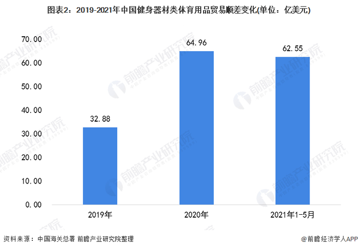 原标题:2021年中国健身器材类体育用品进出口市场现状分析 健身器材贸易顺差进一步扩大 来源:前瞻产业研究院