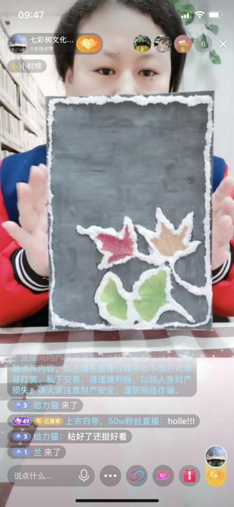 用树叶制作二十四节气手工艺品 这节直播课被“点赞”
