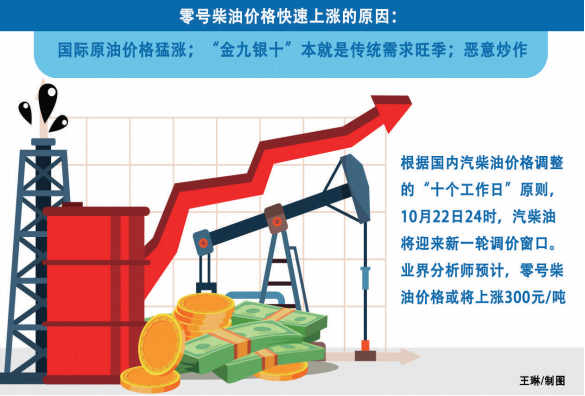 田宇告诉记者,零号柴油批发价10月19日每吨7780元,10月20日8150元,10月21日8750元,“三天就涨了近千元”。