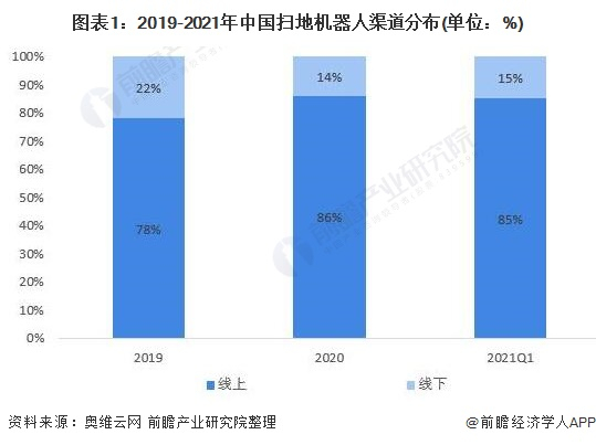 科沃斯和石头科技是中国扫地机器人龙头企业之二。根据奥维云网的统计数据,目前我国扫地机器人的销售以线上渠道为主。2019年至2021年一季度,中国扫地机器人的线上销售占比由78%提升至85%。