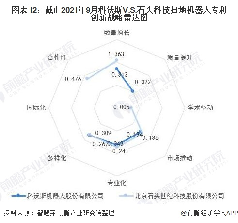 整体来看,科沃斯扫地机器人技术在质量提升和多样化具有相对竞争优势,石头科技扫地机器人技术则在数量增长、学术驱动、市场推动、专业化和合作性上具有相对竞争优势。
