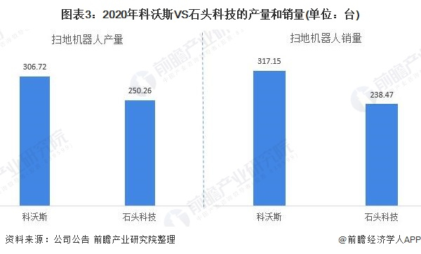 由于石头科技有小米的部分代工业务,与小米有一定的关联关系,从产品的生产来看,石头科技的产销量仅略低于科沃斯。二者处于行业领先地位。