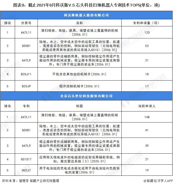 原标题:独家!科沃斯VS石头科技扫地机器人技术布局对比(附专利总量对比、合作申请对比、重点专利布局对比等) 来源:前瞻产业研究院