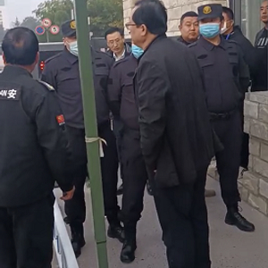 ▲该校董事会成员称学校工作人员欲进入校园,遭身穿保安服的社会人员拦截 受访者供图