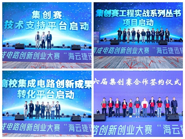 大赛联合行业内领先企业及知名高校启动大赛技术支持平台、工程实战系列丛书、高校集成电路创新成果转化平台三大产学合作项目。同时,第六届部分杯赛企业在现场进行了签约仪式。