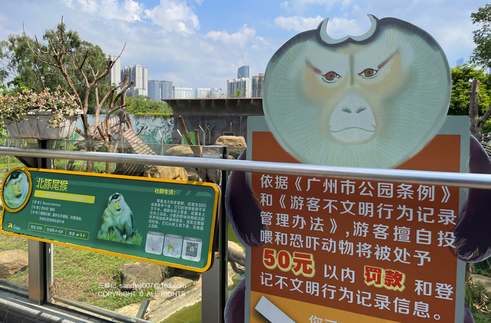 园区还有很多不要投喂动物的提示,在各个动物展区以各种可爱的设计出现。反复提醒,大概是因为投喂动物的现象真的很严重吧。