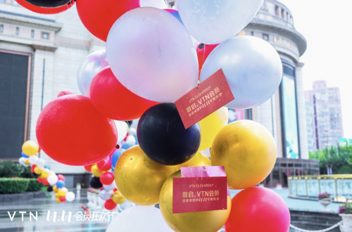 10月21日,在上海环球港,数百个汽球升空,VTN国际品牌会员俱乐部给全球会员发送的邀请函陪随着惊喜点亮整个广场。此外,在美国纽约、澳大利亚悉尼、日本新宿、杭州、北京、广州、深圳、成都等全球8大城市的户外大屏也打出了VTN给全球会员的专属邀请函。