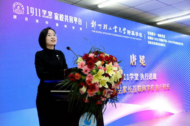 1911学堂执行总裁、1911学生家长互联网学校执行校长唐冕女士随后致辞,她向各位与会领导及嘉宾介绍了1911学堂家校共育平台自疫情以来在家校共育和家长教育方面做出的不懈努力,详细说明了平台开创了哪些能够便利家长和教师家校协同共育工作的多样化功能。1911学堂家校共育平台要为学校搭建官方家长学校,通过线上、线下多种方式,帮助建立学校、教师和家长之间有效的链接和沟通机制,平台的目标就在于服务好学校、服务好家长,在家校社协同共育的大语境下,帮助孩子健康、快乐、全面成长。她表示,通过与1911学堂家校共育平台的深度合作,希望与郑州轻工业大学附属实验学校携手共进,辐射引领郑州乃至中原地区的家校合作大格局。据悉,1911学堂家校共育平台在成熟的基础上仍在不断更新迭代,以期为学校提供更多优质的服务。