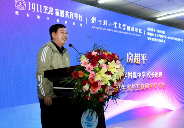 在接下来的仪式上,清华附中校长助理、1911学生家长互联网学校房超平校长发表了热情洋溢的致辞,他表示清华附中一体化学校始终大力支持1911学堂家校共育平台在推进家校共育、促进家长教育方面的长足努力,双方联合成立了“1911学生家长互联网学校”,旨在为家长提供更好的教育资源。房超平校长对郑州轻工业大学附属学校成为“1911学生家长互联网学校实践学校”感到由衷的喜悦,期待该校的家校合作工作能够快速有序地完成制度性建设,形成体制性保障。