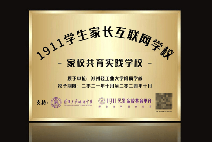 为深入贯彻落实党在十九届五中全会通过的《中共中央关于制定国民经济和社会发展第十四个五年规划和二○三五远景目标的建议》中提出的“建设高质量教育体系,健全学校家庭社会协同育人机制”改革指示,构建本校家校共育良性长效发展机制,10月21日下午,郑州轻工业大学附属学校携手1911学堂家校共育平台正式启动学校的家校共育项目建设,并于校内共同举行了 “1911学生家长互联网学校实践学校”授牌仪式。