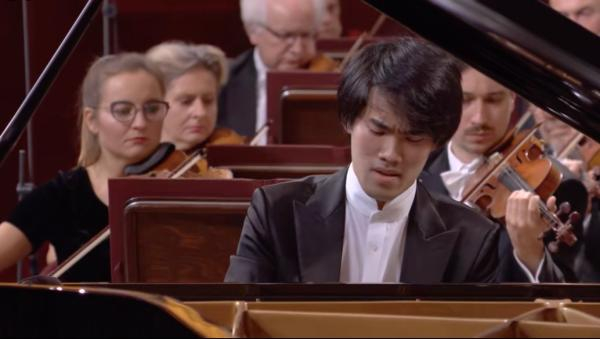 此次在肖邦国际钢琴比赛决赛中,刘晓禹最后一个出场,与华沙爱乐乐团合作演奏了肖邦《e小调第一钢琴协奏曲》。一曲结束,酣畅淋漓,刘晓禹收获了数分钟的满堂喝彩。