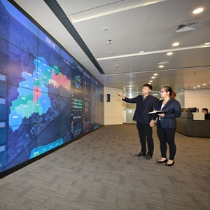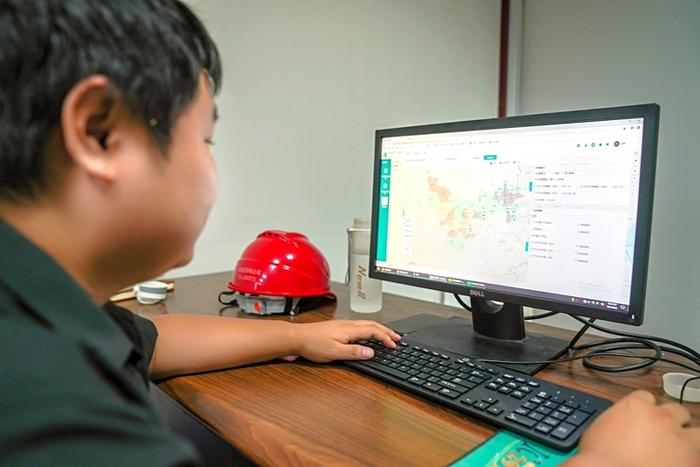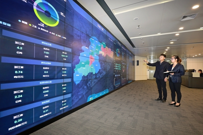7月12日,国网杭州市萧山区供电公司员工利用双碳大脑对区域碳排放情况进行监测。(姚靖霖摄)
