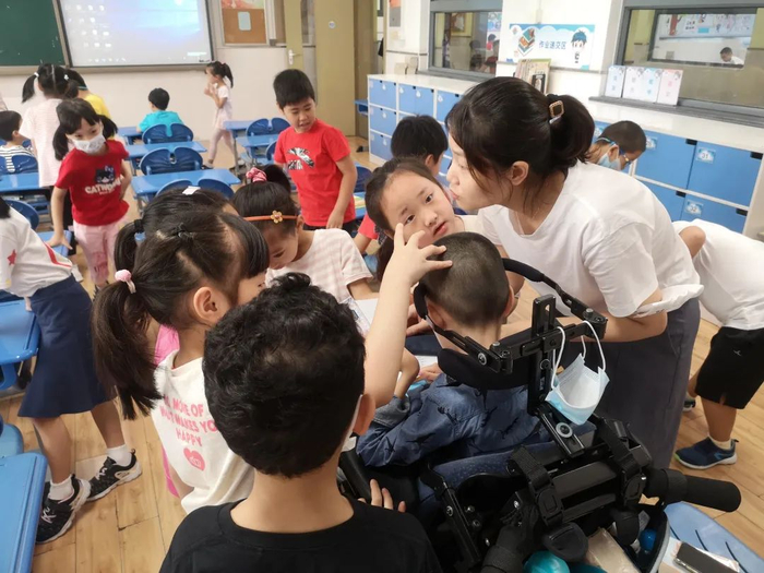 平时在学校,绮洛也时不时会在课间和朋友一起来找弟弟。她说:“大家会对弟弟的轮椅比较好奇,就想下来看看他。”