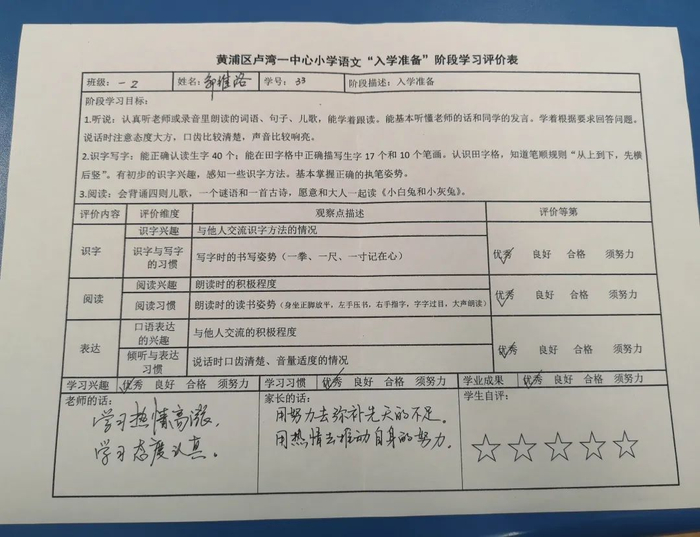 维洛的语文阶段学习评价表