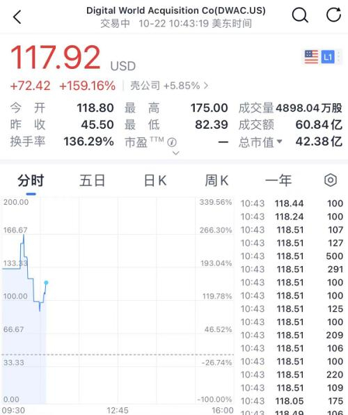 受消息影响,DWAC一度大涨超200%