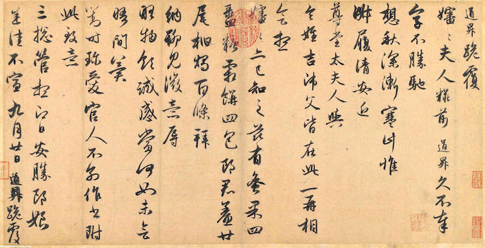 赵孟頫的《深秋帖》,实是给老伴管道昇“代笔”的一封家书: