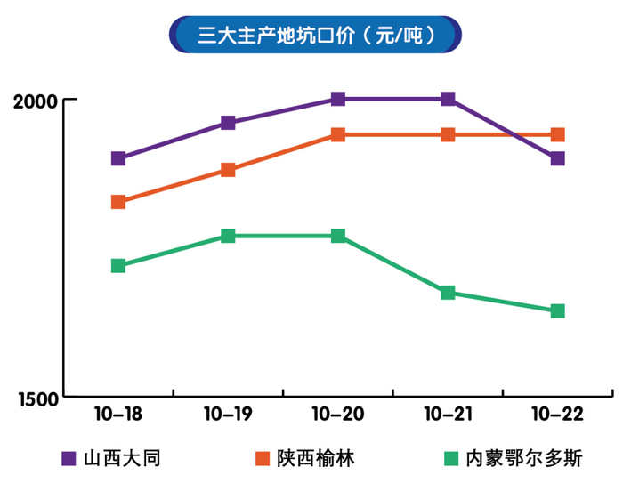 三大主产地坑口价大致呈现倒U字型,以内蒙鄂尔多斯坑口价为例,截至本周五,三天连降100多元,山西大同、陕西榆林也呈现类似特点。