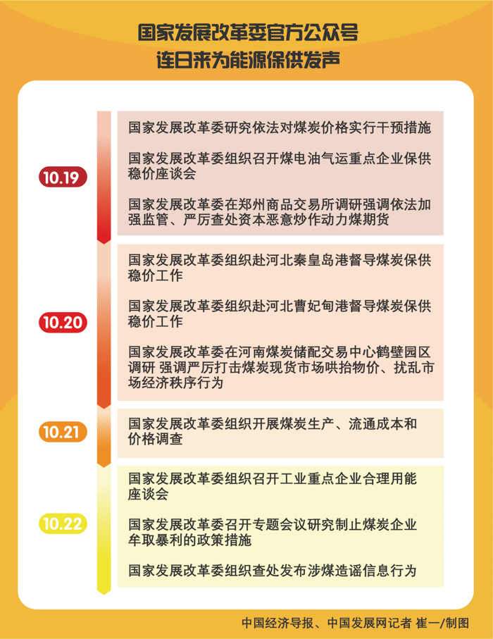 10月19日至今日,在以煤炭为主的能源保供稳价方面,国家发展改革委几乎每日都有新动作,其官方公号相关发文几乎达到了日推三篇的热度。