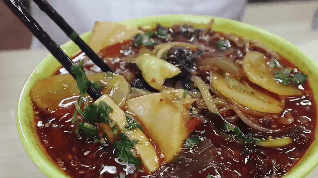 冒菜是一个人的火锅、面面的土豆、脆脆的木耳、滑滑的土豆粉,嫩嫩的豆腐,再浇上秘制汤料,撒上小米椒,鲜辣带劲。
