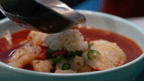 排骨蔬菜和着油泼辣子汤汁一起吃下去,辣味浓烈不呛口,麻味柔和很抓人,吃的人满嘴留香。