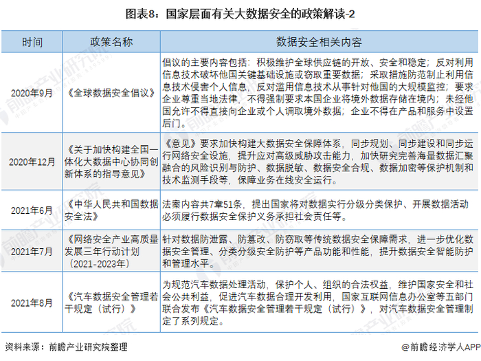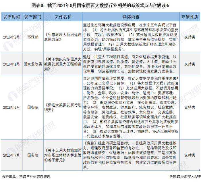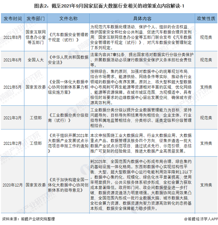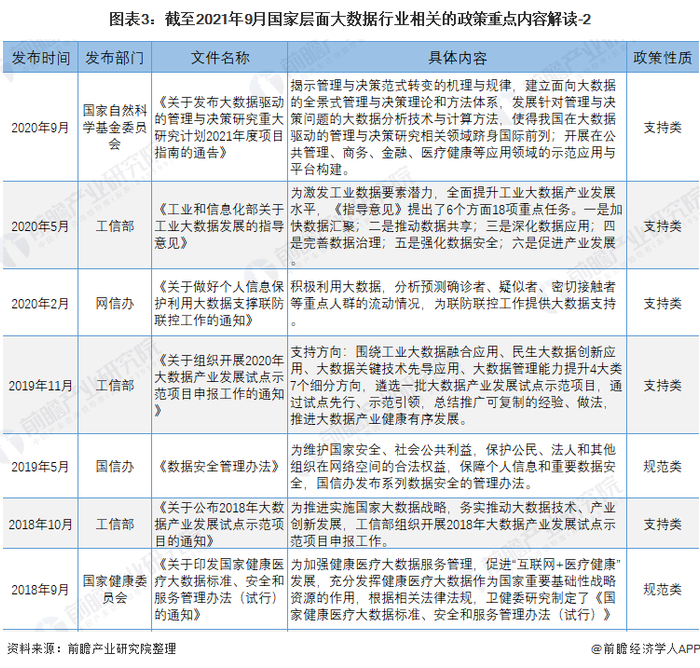 原标题:重磅!2021年中国大数据行业国家层面政策汇总及解读(全)大数据安全与产业融合发展成为行业政策建设重点 来源:前瞻产业研究院