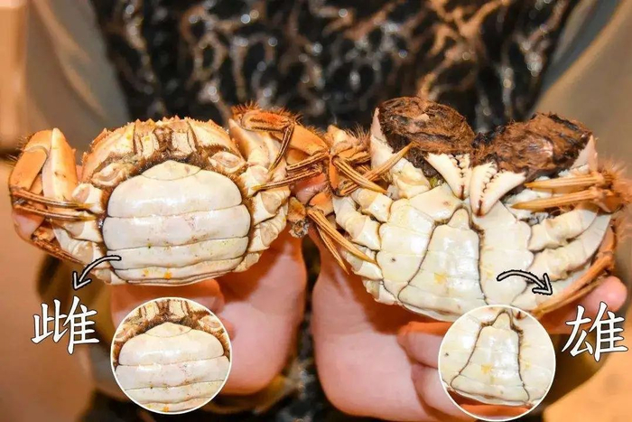 判断公蟹母蟹的标准就是看蟹肚,通常公蟹的肚子呈现三角形,而母蟹的肚子则呈现圆形。