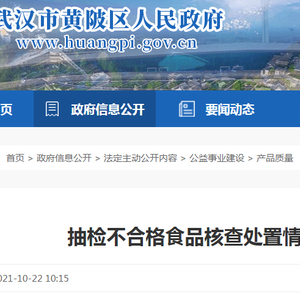 中国质量新闻网讯 近日,武汉市黄陂区市场监管局发布抽检不合格食品核查处置情况的通告(21-100)。