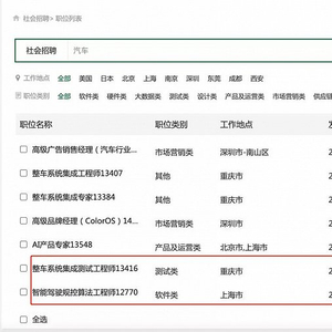从OPPO的官方招聘网站上可以看到,尽管OPPO否认入局造车,但从今年5月开始,OPPO开始招聘电动汽车相关的技术人才,岗位涉及智能驾驶规控算法工程师和整车系统集成测试工程师,工作地点分别在上海和重庆。