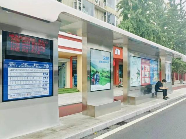 过去“两个杆子一块牌子”就是一个公交站点。近年来,这类公交站牌也在慢慢退出郫都历史舞台。如今带公交实时路线显示屏、可供乘客坐下休息的新型站台陆续到位。原先简陋的公交站点穿上“新装”,不仅为候车市民遮风挡雨,更成为了城市的美丽风景。