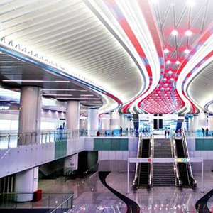 番禺广场站是广州地铁18号线、22号线、3号线及规划的17号线4条线路换乘的地下五层车站。中铁十一局承担车站土建、暗挖、盾构、铺轨及机电工程施工。作为亚洲最大、湾区最美车站,番禺广场站有以下四大特点: