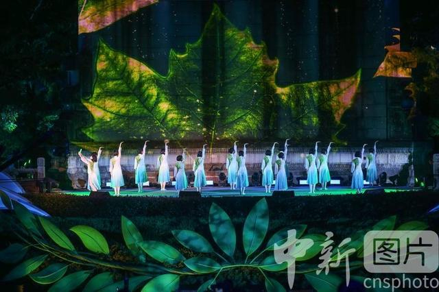 10月24日晚,江苏省南京市,2021南京和平论坛在中山陵音乐台开幕。在灯光和多媒体投影的渲染下,轮番上演的舞蹈诗画让观众“沉浸式”地感受到“和合共生”的美好寓意。图为开幕式舞蹈诗画表演。 中新社记者 泱波 摄