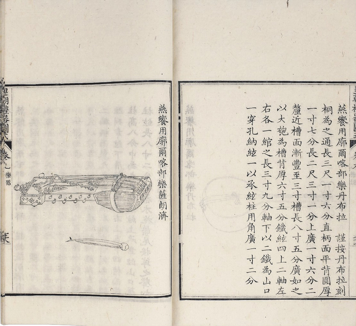 清道光十四年 (公元1834年) 《钦定国子监志》 卷二十·御案图·第十、十一叶 (局部) 纵21.1厘米 横60厘米 厚3厘米