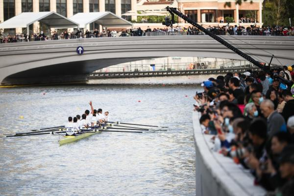 刚刚过去的周末,首届上海赛艇公开赛在苏州河上鸣锣开战。在独具海派风情与历史韵味的水道上,运动员们的矫健身姿与岸线的旖旎风光为市民带来难忘的观赛体验。不少年轻人惊叹:苏州河,亦可赛艇!