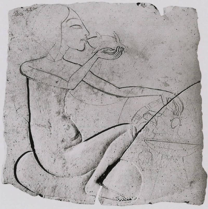 《吃鸭子的公主》石灰岩浮雕半成品,阿玛尔那北王宫(North Palace, Amarna),新王国第18王朝,约公元前1353-1336年,开罗埃及博物馆(Egyptian Museum, Cairo)