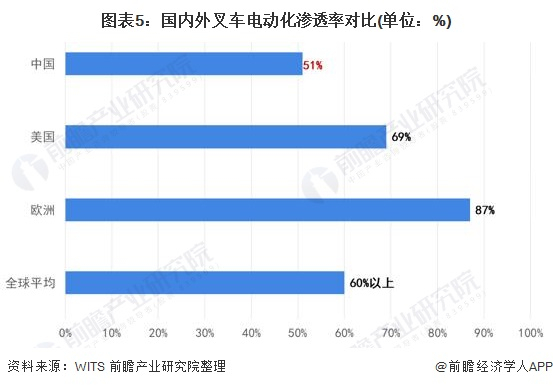 2022年中国电动叉车制造市场供需现状及发展前景分析 国内外叉车电动化渗透率尚有差距