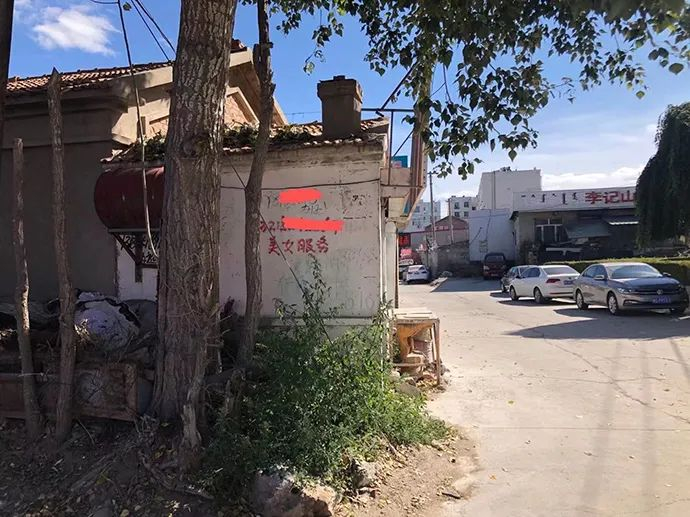 林东镇老城区多处建筑外墙上被喷涂上“美女服务”“小姐包夜”等字样。本文图片 澎湃新闻记者 卫佳铭、王健