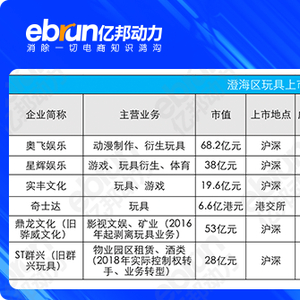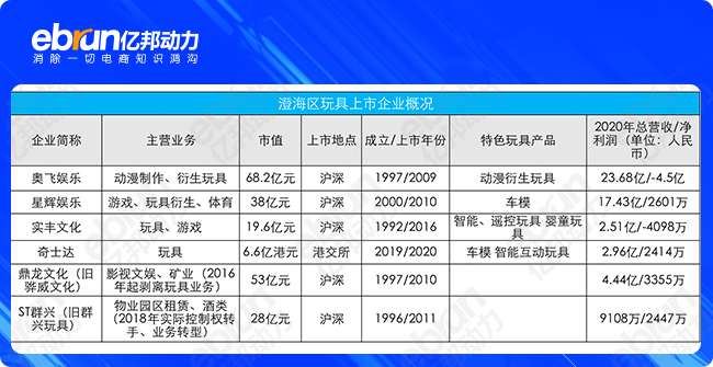(澄海区玩具类上市企业概况,含此后业务转型至其他领域的企业 亿邦根据企业公开资料整理)