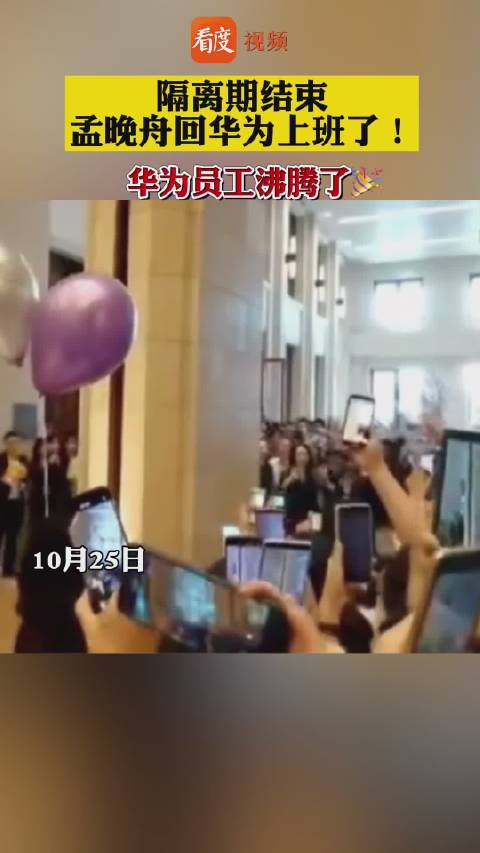 10月25日,一段由华为员工拍摄的视频片段显示,孟晚舟已经回到华为上班。