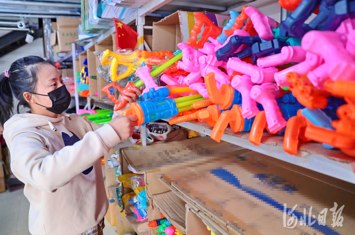 2021年10月25日,河北省秦皇岛市海港区临港物流园区义乌小商品城一家电商企业内,商家正在整理相关货物。