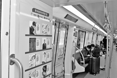 江苏常州地铁1号线开通了“有声图书馆”主题专列,乘客扫码即可听书。新华社发