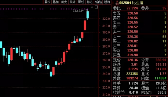 涨价意味着电池厂商能够将上游原材料成本向下传导,为公司利润带来利好。比亚迪股价率先表现出积极反应,今日高开4%,股价一度摸高333元,刷新历史新高,随后股价回落,截至发稿报每股318元,涨0.2%。