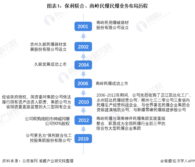 本文核心数据:保利联合和南岭民爆民爆业务布局历程、保利联合和南岭民爆民爆产品产量